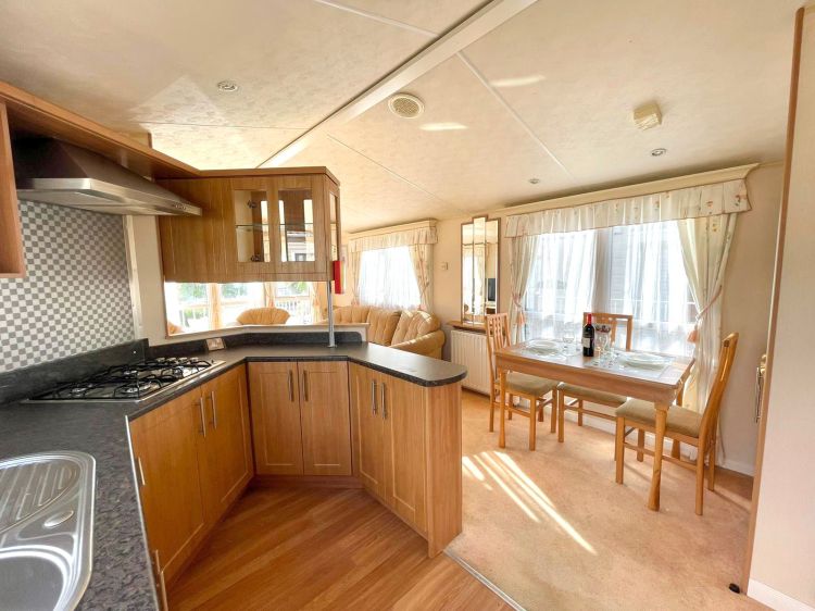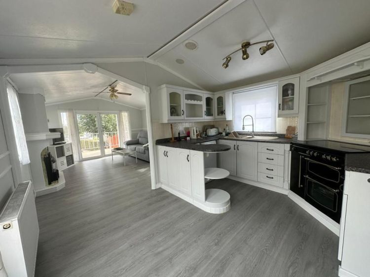 A superb Willerby Vogue Static Caravan 42x14ft. in a great location with decking two sides. The living room has French doors lading out to the decking and sitting area..