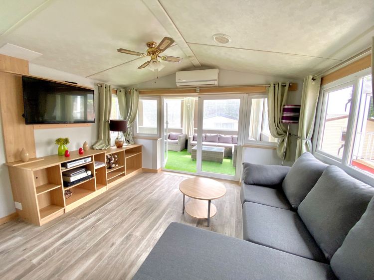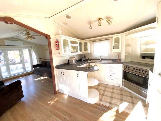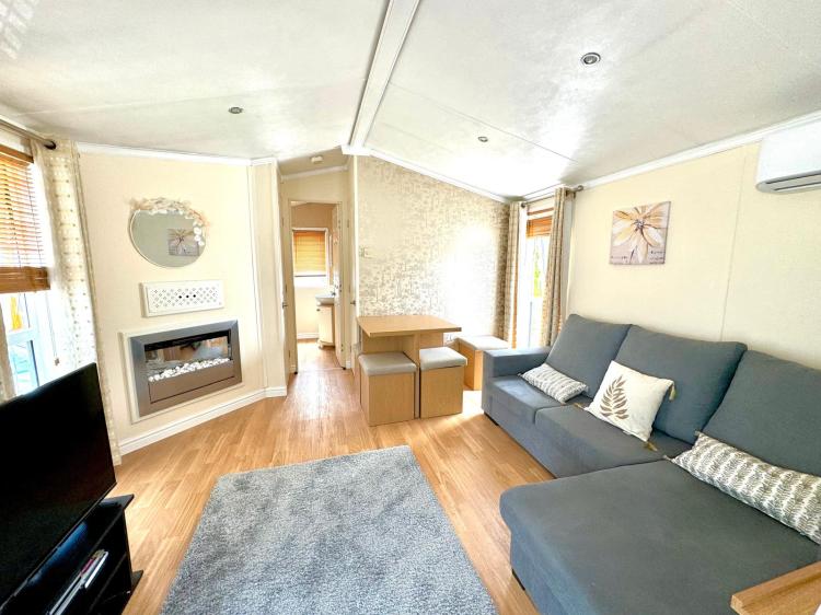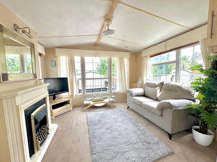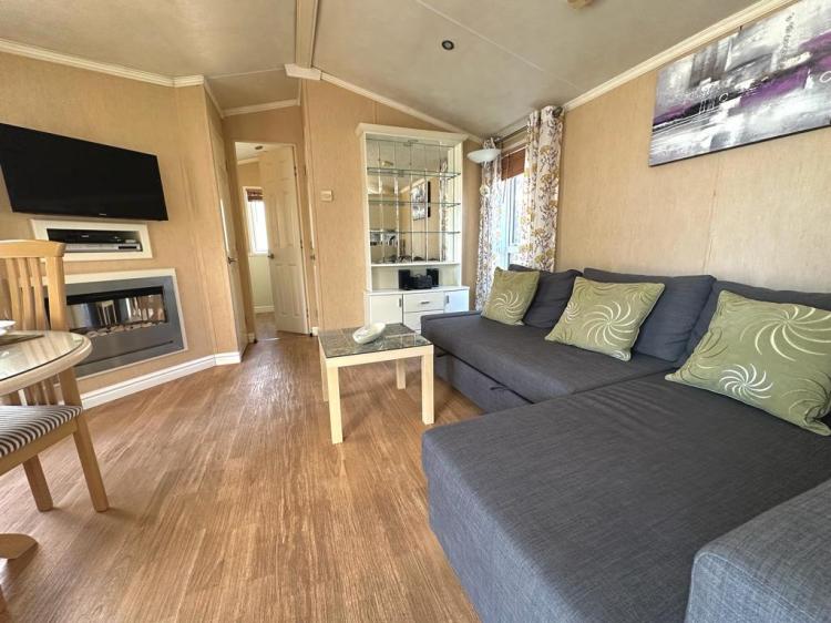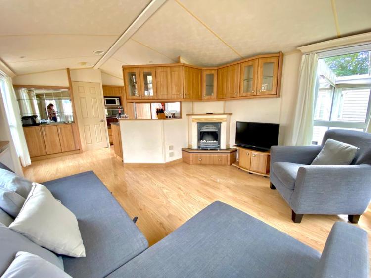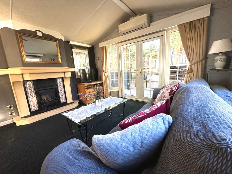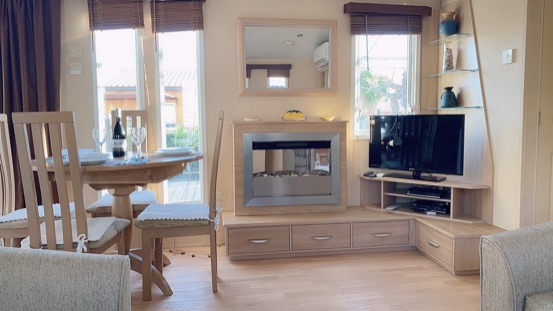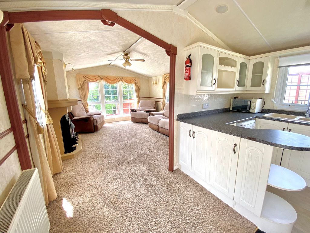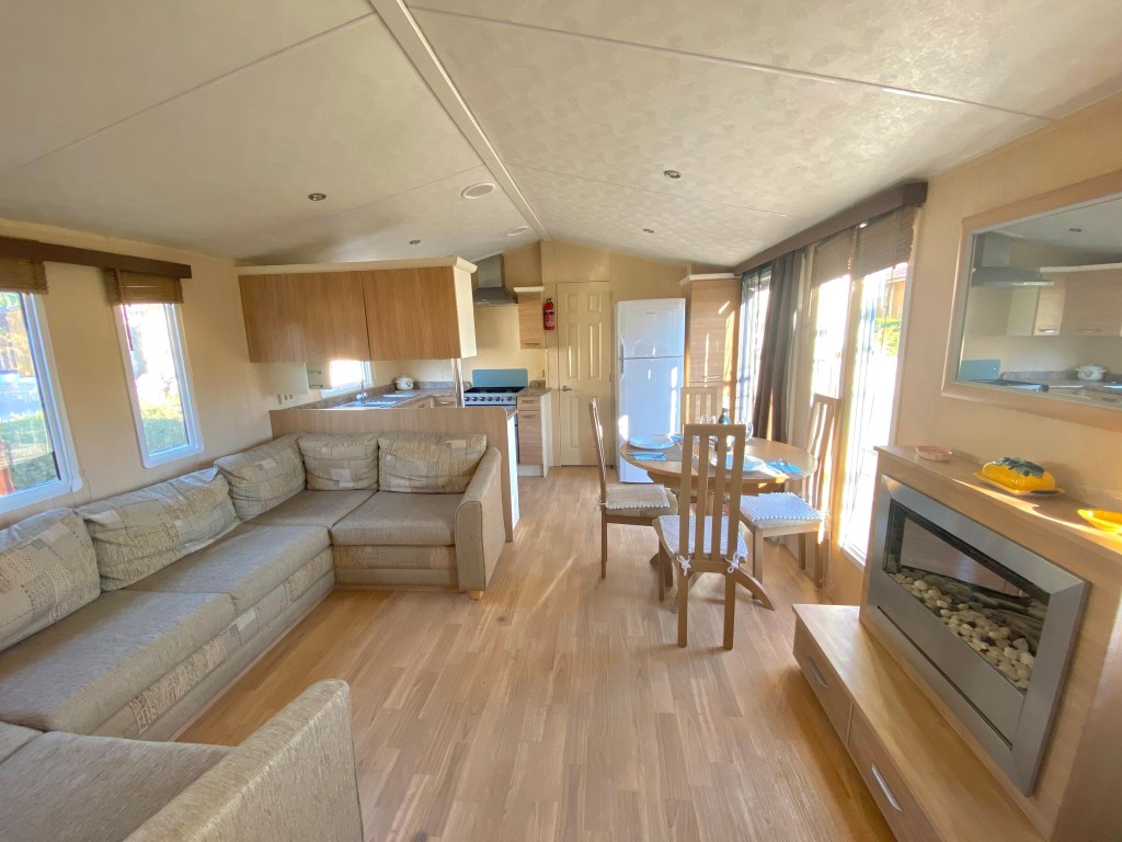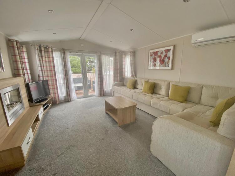 A superb Willerby Vogue Static Caravan 43×13.5ft. with L Shape decking The living room has French doors lading out to the decking and sitting area..