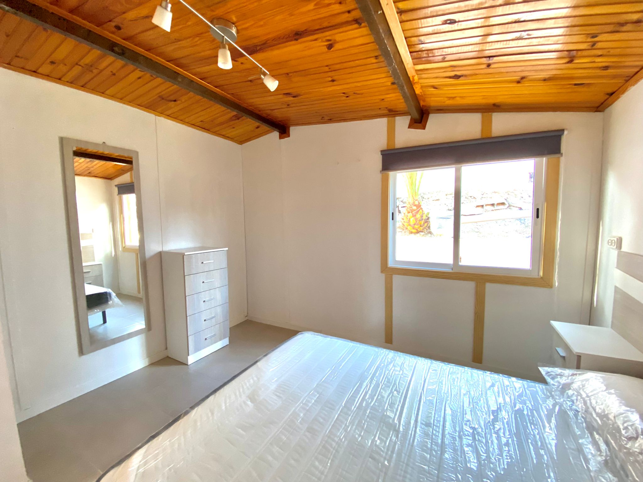 The lodge is 60m2, With 1 bedroom with all new furniture, toilet basin and extralarge shower unit .
