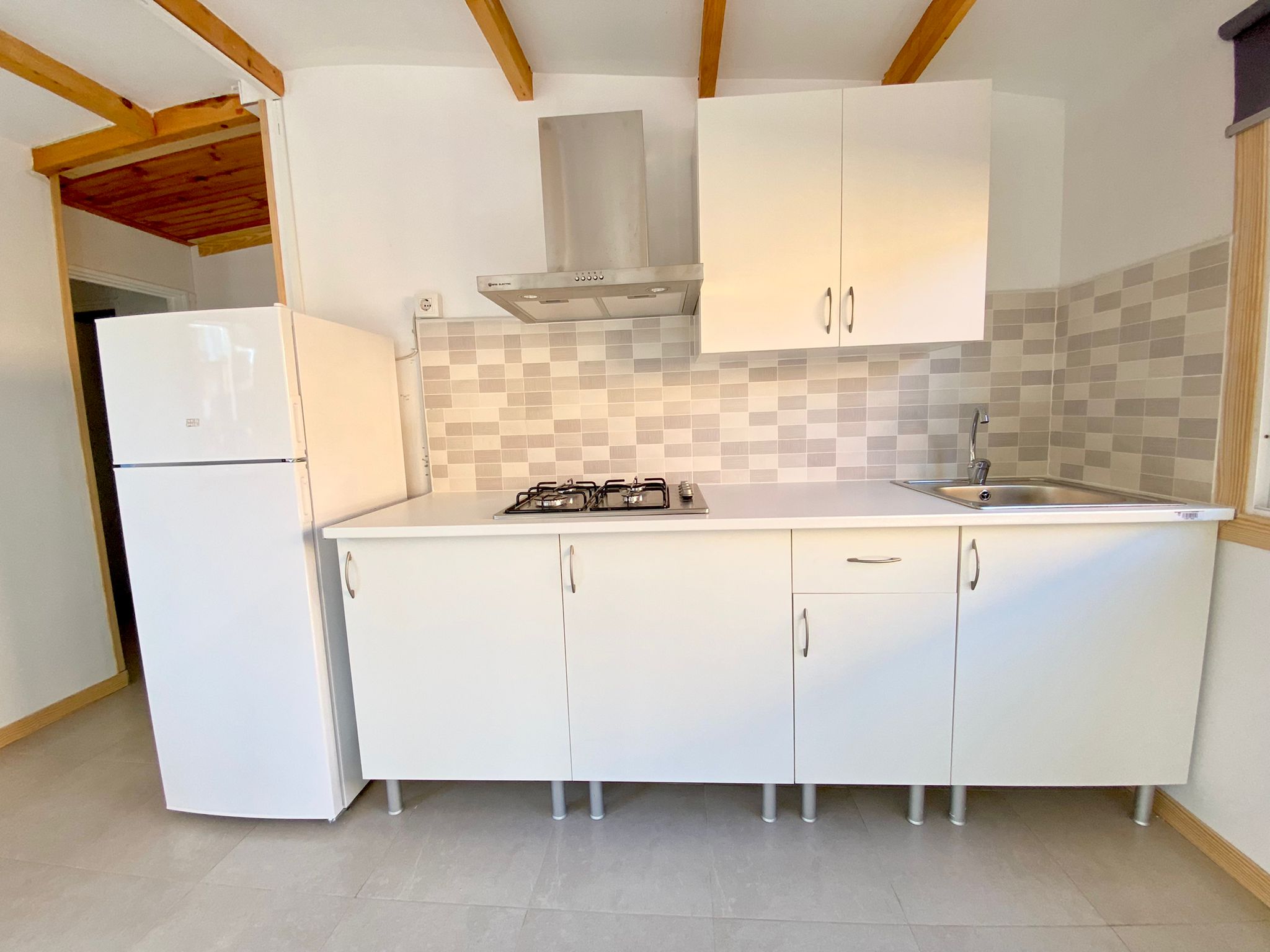 Full kitchen, extracter, fridge and gas hob. Every things is gas because gas is cheaper in Spain.