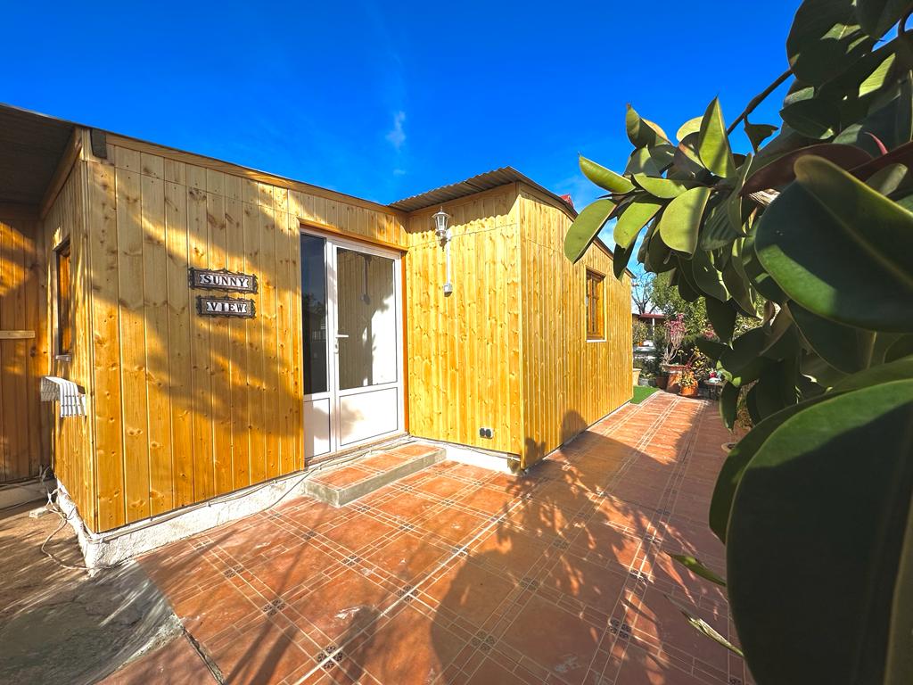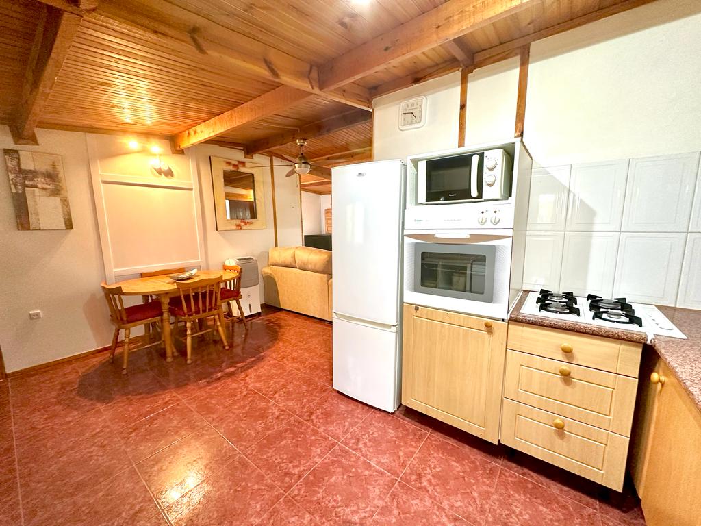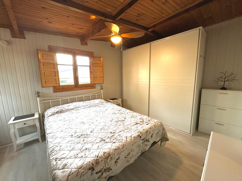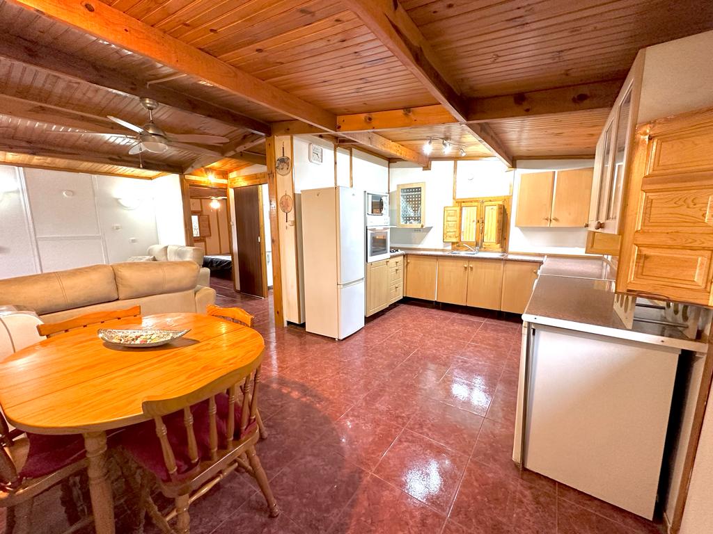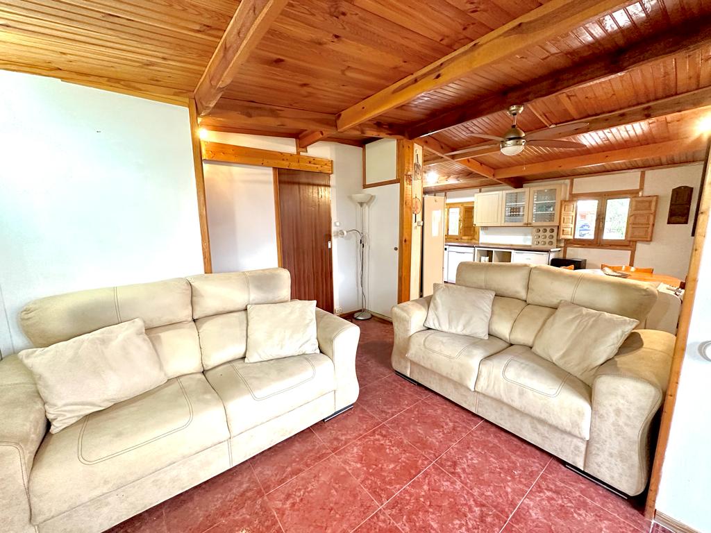 The lodge is 79 m2 aprox, Out side área very large garden área with bbq and space for a car.