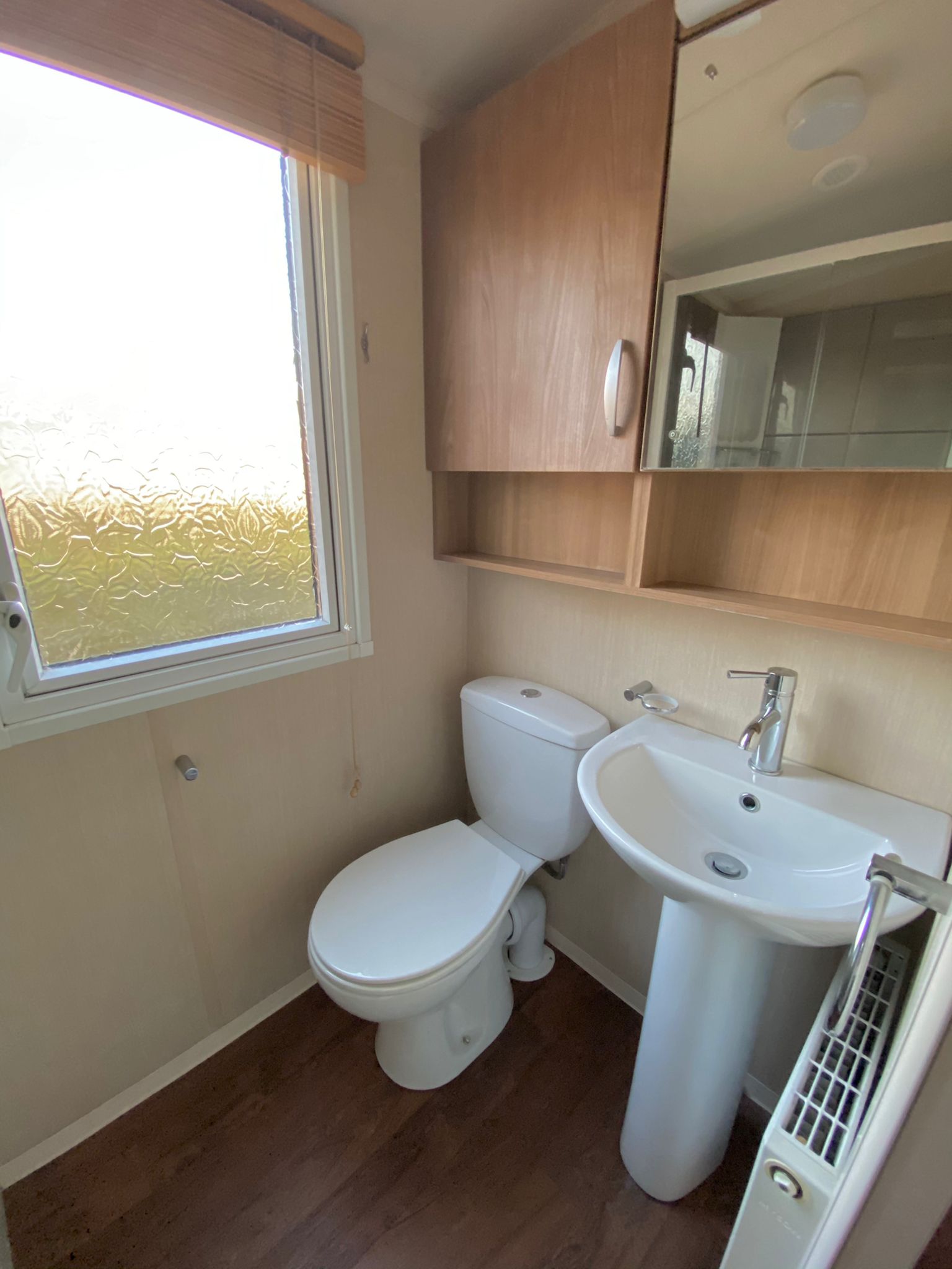 Going through to the rear of the caravan you have a family sized bathroom overhead shower, toilet and sink.