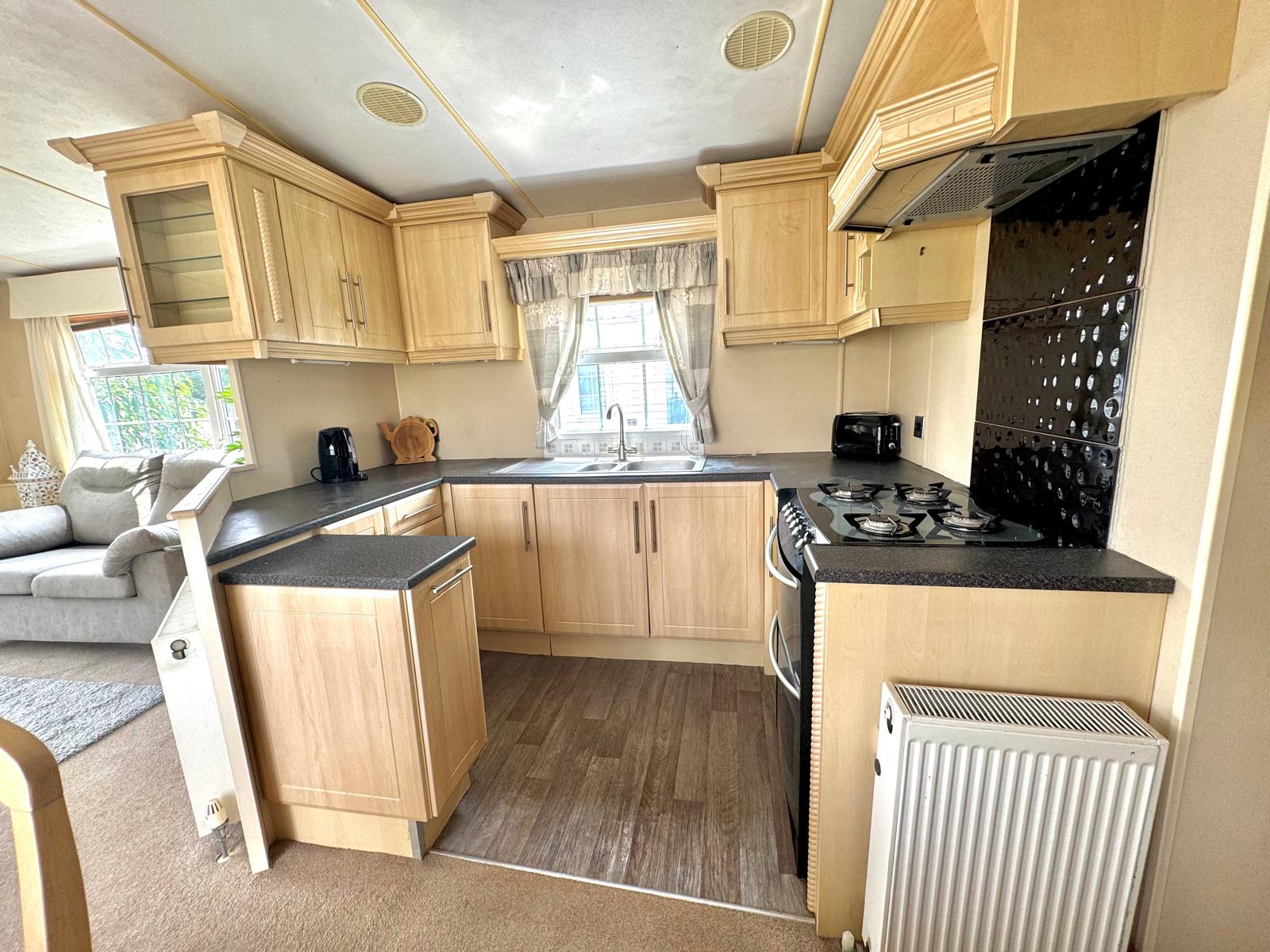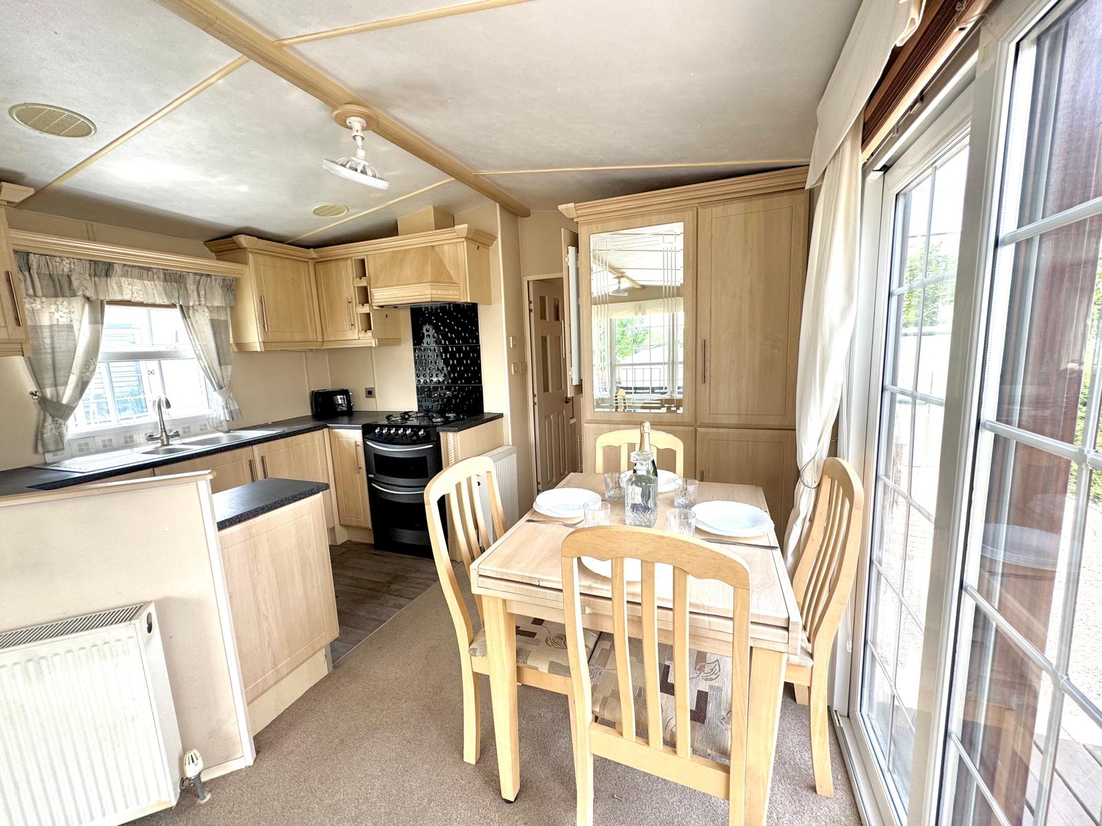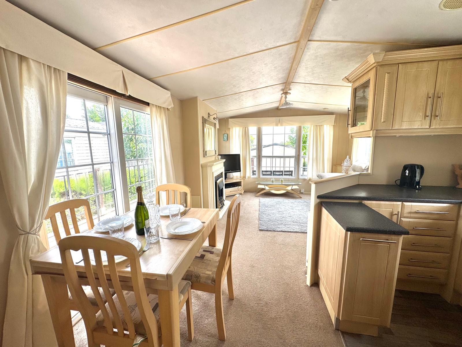 Has you can see in the photos patio Windows at the side goes on to the decking, and decking in L shape.