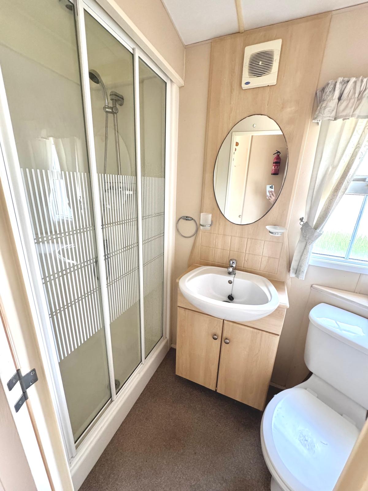 With 2 bedrooms. The double room has on suite with toilet and basin and second bedrrom has two single beds